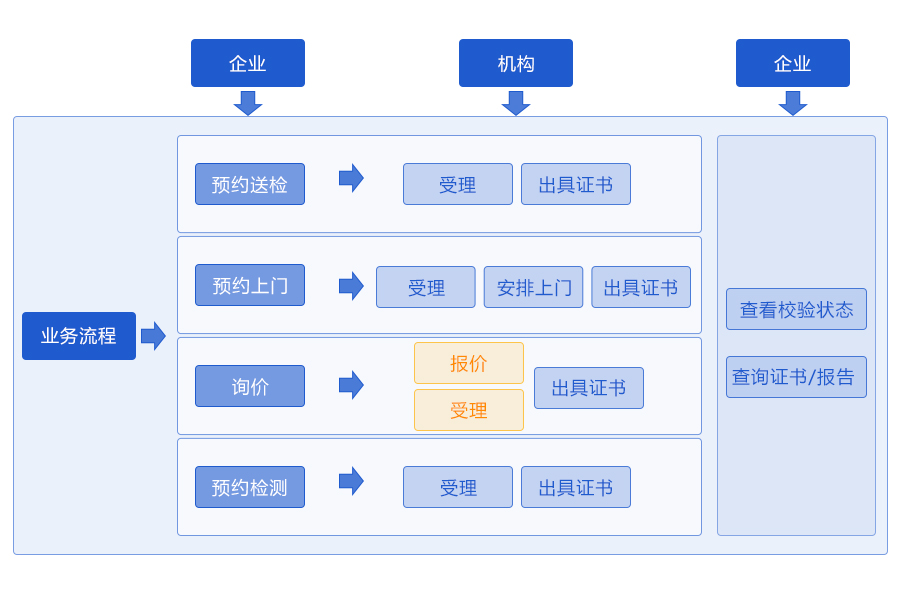 服务能力查询:企业可以输入器具/样品名称,查询机构是否具备检校资质。